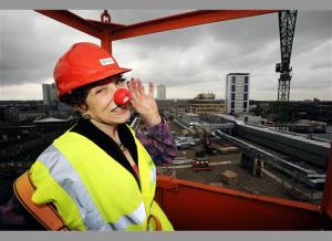 Most people would have left it at that. What really impresses me about Diane, however, is that she approached the company, BAM, to ask them if she could read her poem to the crane’s driver on Red Nose Day. BAM readily agreed, and after she done a reading of her poem, she was then hoist into the sky (rather her than me). Here’s coverage on the BAM site.