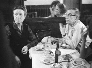 Below Jean-Paul Sartre and Simone De Beauvoir, thinking about waiters.