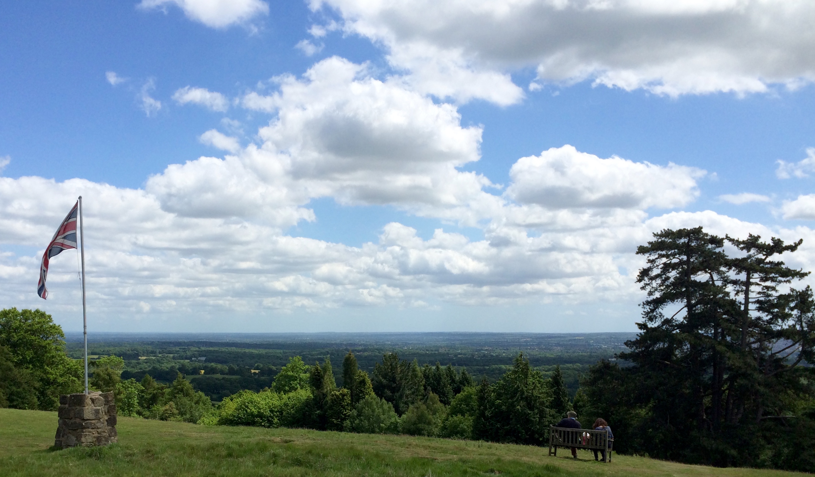 Below, a view over the Weald, Robin and Lucy, hand shaped windsocks, and a lovely rusted treelike sculpture.