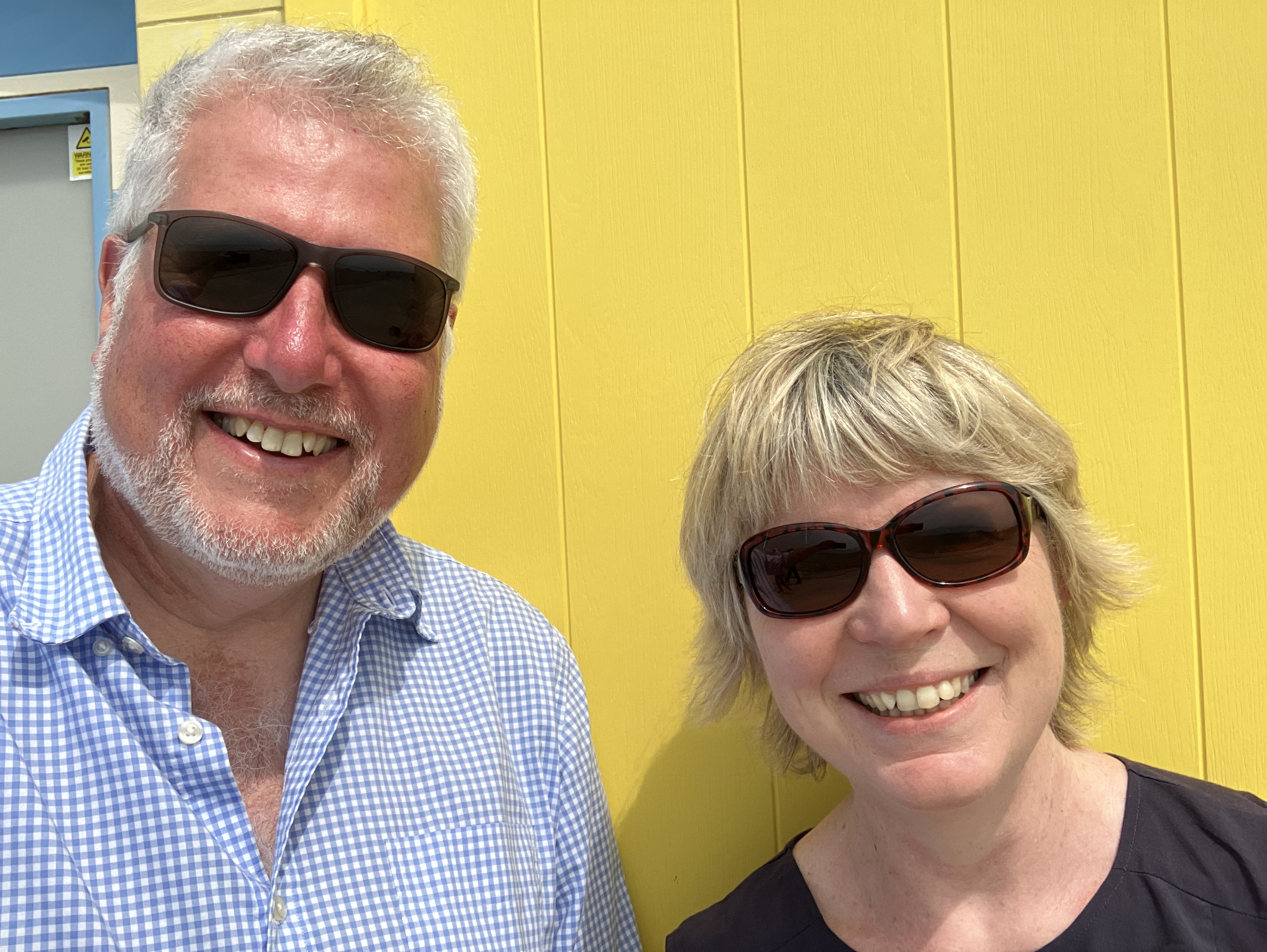 The Planet Poetry Podcast is produced and presented by Robin Houghton and Peter Kenny. Selfie taken on Seaford Beach July 2024 having wrapped the fourth season.